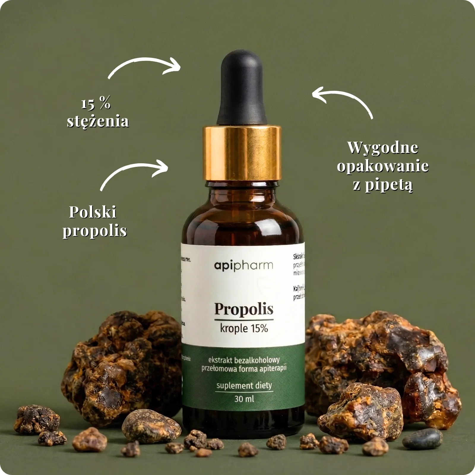 Pełne wsparcie układu immunologicznego to proces, w którym natura daje nam najlepsze narzędzia. Jeśli szukasz sprawdzonej, naturalnej bariery przeciw wirusom i bakteriom - wybierz wysokoskoncentrowany, 15% ekstrakt z propolisu. To właśnie propolis pozwala wzmocnić organizm, łagodzić stany zapalne i budować trwałą odporność, co potwierdzają liczne badania naukowe i autorytety w dziedzinie apiterapii. Wybierz krople propolisowe i zyskaj naturalną ochronę każdego dnia!