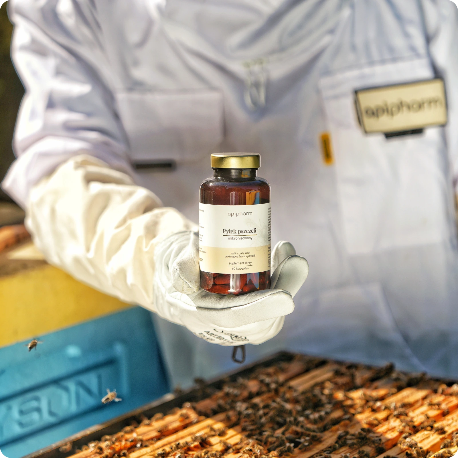 100% naturalny skład - tylko pyłek pszczeli w wygodnej roślinnej kapsułce.
